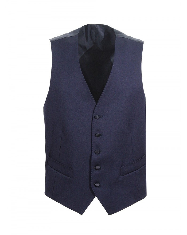 Chiusura frontale con bottone, revers a lancia, una tasca sul petto a filetto, due tasche laterali a filetto, doppio spacco posteriore.