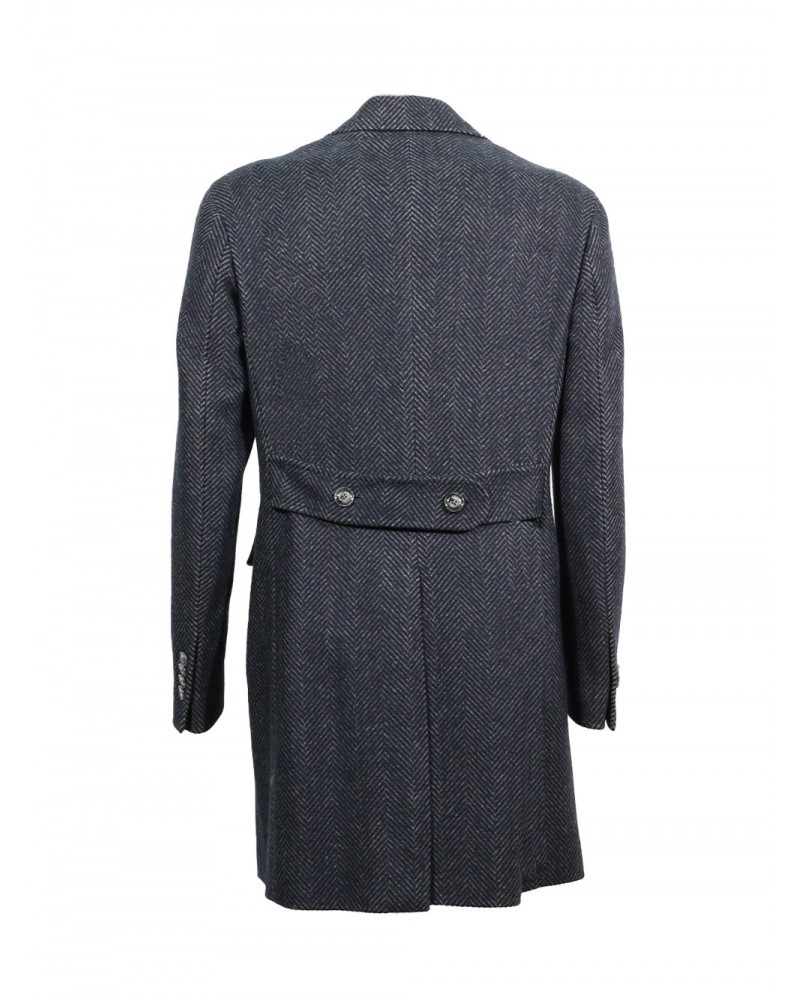 Cappotto in lana dal taglio classico e raffinato. Chiusura doppiopetto con sei bottoni, rever a lancia e tasche frontali a filetto per un look elegante e strutturato. Linea sartoriale, ideale per completare outfit formali o per un outerwear di carattere nelle giornate fredde.