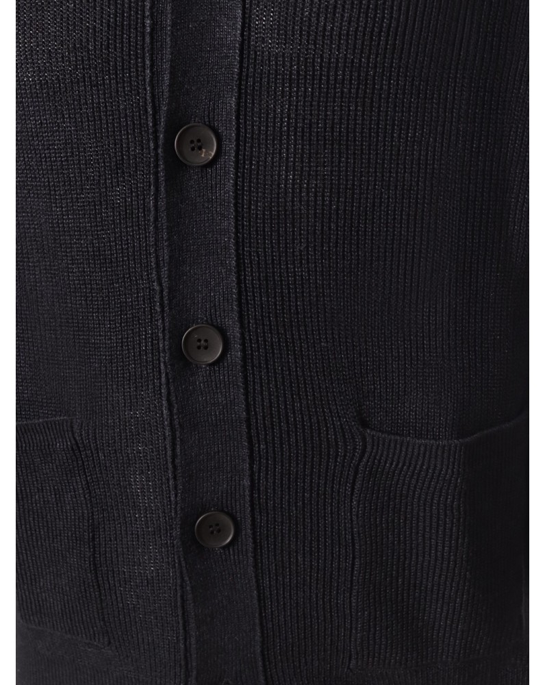 Chiusura con bottoni, maniche lunghe, tasche laterali a toppa.