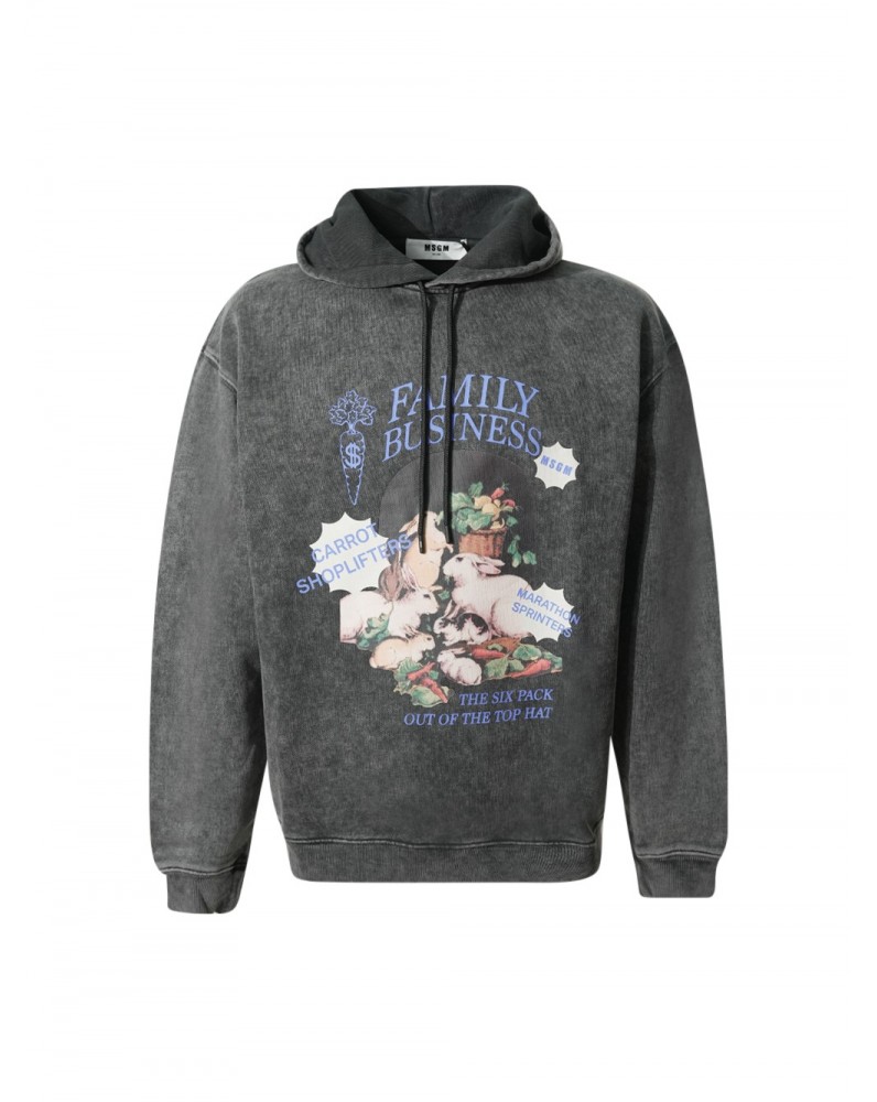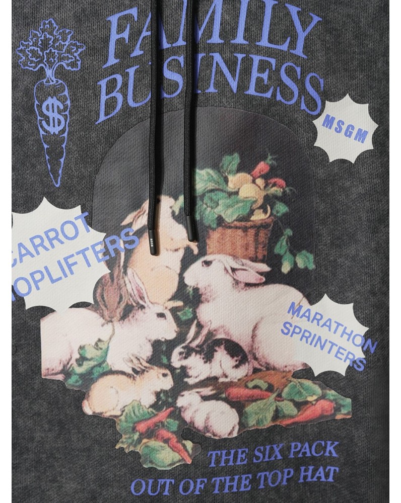 Felpa In Jersey Marmorizzato Con Cappuccio E Stampa Family Business Msgm