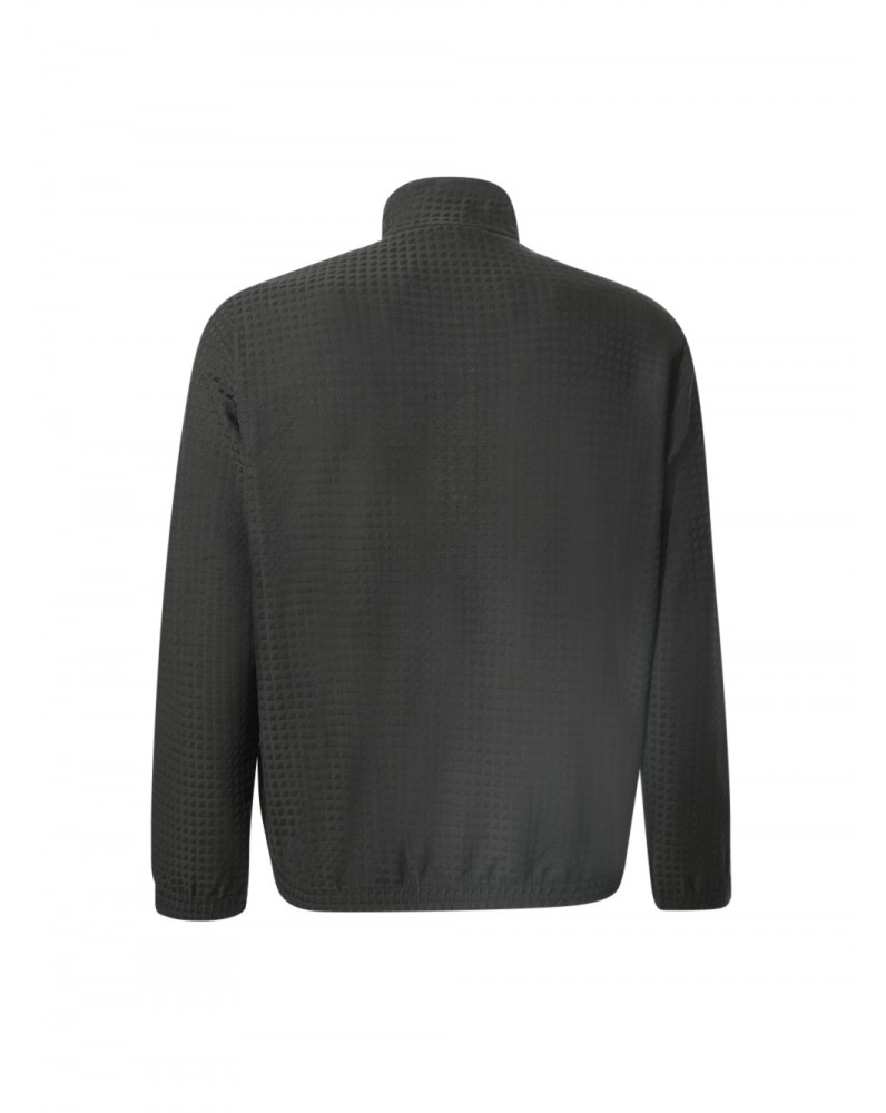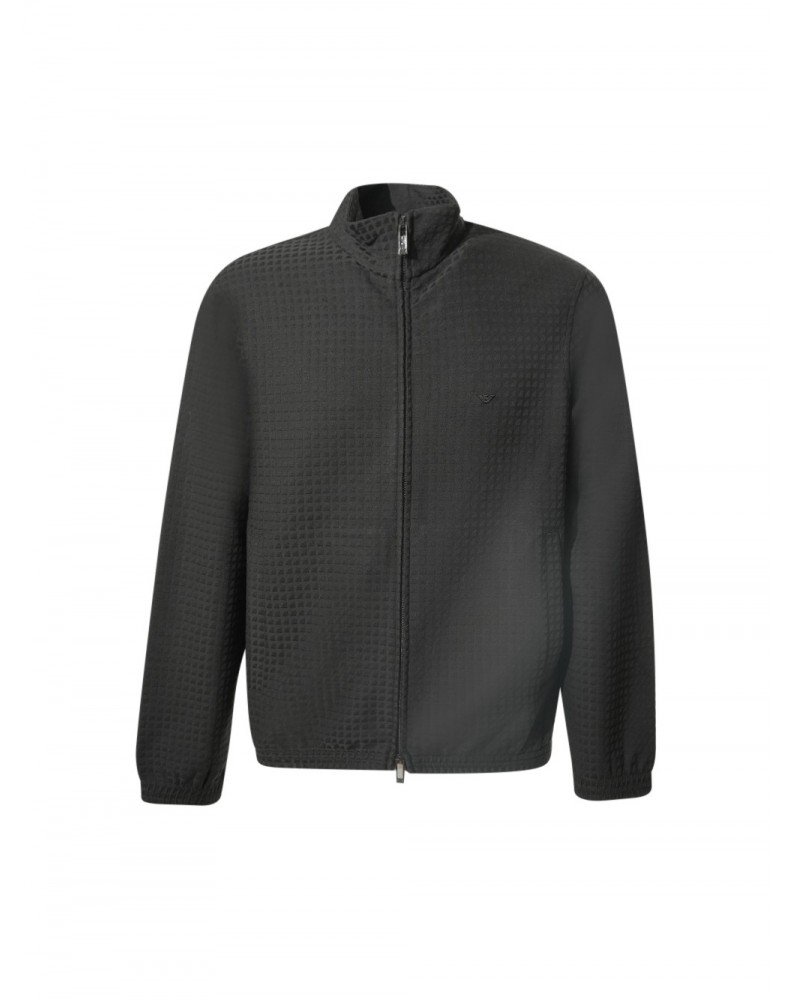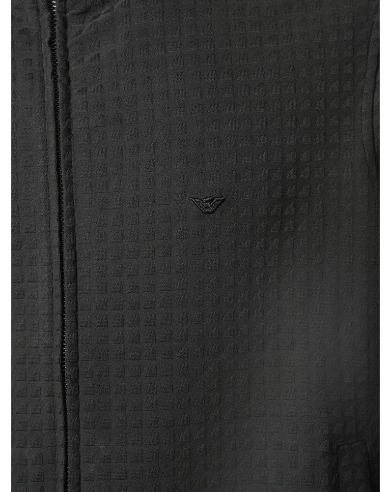 Felpa provvista di chiusura full zip, realizzata in jersey misto lyocell, una fibra semi-sintetica che si caratterizza per il bassissimo impatto ecologico che ha sull'ambiente. La fantasia a lavorazione jacquard percorre l'intero capo creando un originale motivo all over che dona pregio e conferisce identità al modello.