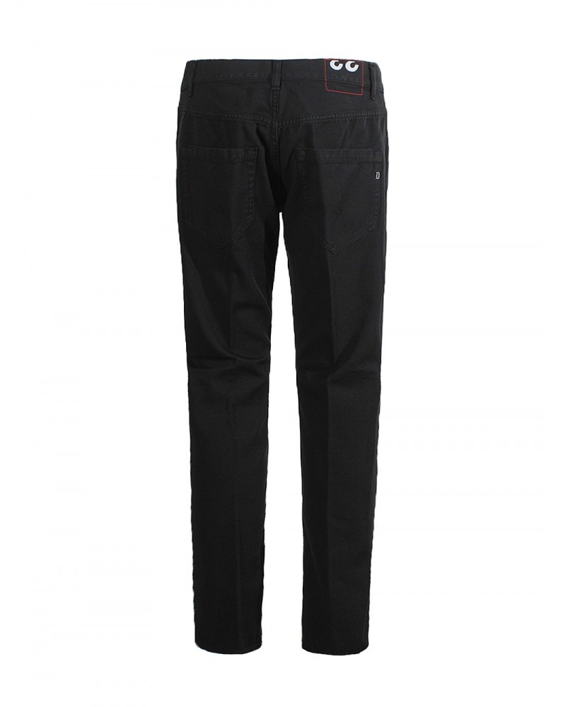 Vita con passanti per cintura, chiusura con bottoni e zip, modello 5 tasche, logo in metallo.