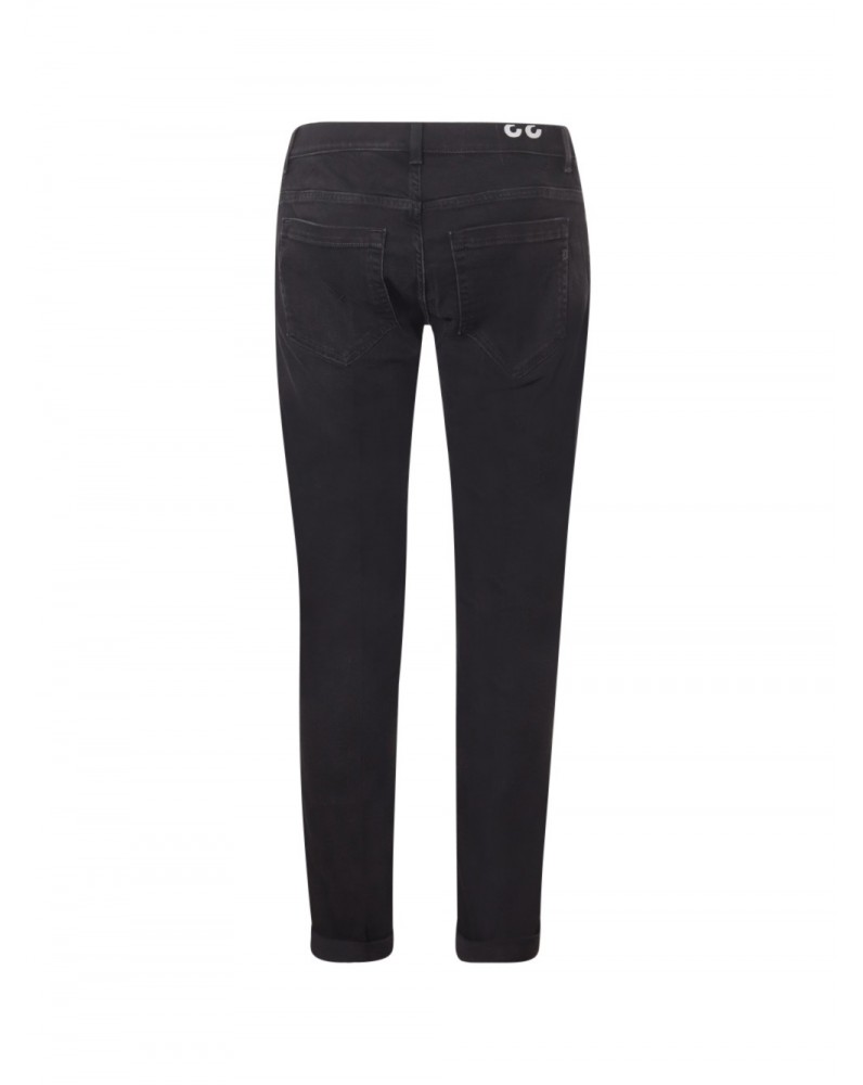 Chiusura con bottoni, passanti per cintura in vita, modello 5 tasche, logo in metallo sul retro.