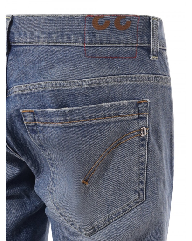 Jeans George cinque tasche skinny fit, vita bassa, taschino a filetto. Denim stretch bluesign APPROVED blu 11.50 oz. Lavaggio chiaro pulito. Logo Dondup.