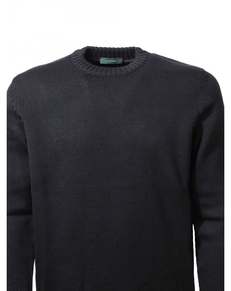 Maglia girocollo maniche lunghe, collo, polso e fondo a coste.