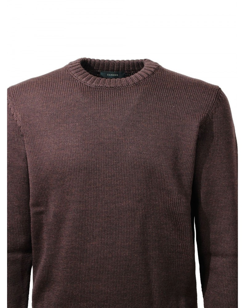 Maglia girocollo maniche lunghe, collo, polso e fondo a coste.