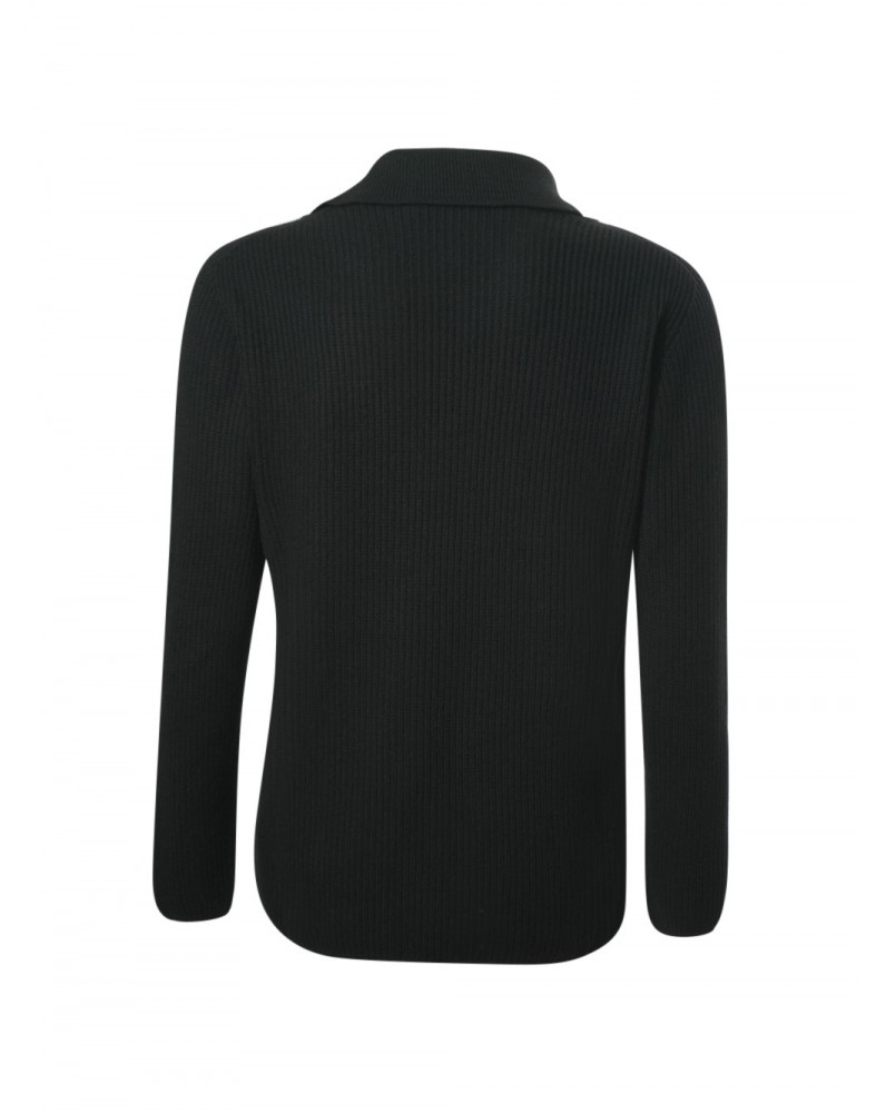 Polo in 100% lana vergine dal taglio regular, con scollo a V rifinito da collo alla francese e chiusura frontale con un bottone. Maniche lunghe e dettagli a costine su orlo e polsi per un look curato e versatile. Morbida, calda e perfetta per outfit eleganti o casual raffinati.