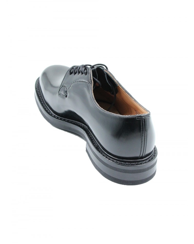 Stringata con cuciture a mano sul sottocchiello, dettaglio cucitura mezzaluna sul sottocchiello, lacci in pelle, occhielli ciechi, fodera interna per la massima durata, costruzione Goodyear con guardolo antipioggia, stemma Church’s su soletta e suola in gomma.